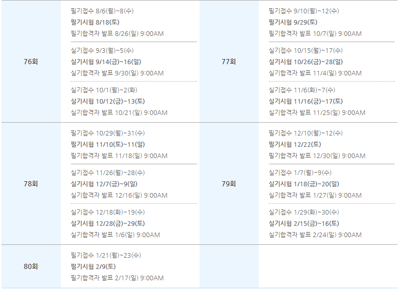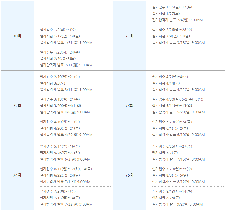 2024년 커피바리스타2급 시험 일정입니다.