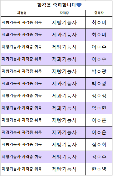 제과 합격을 축하합니다.